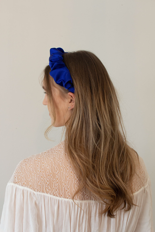 Blå scrunchy hårbøyle