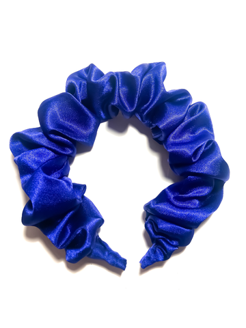 Hårbøyle trukket inn i rysjet sateng stoff. Hårbøylen passer for deg som er på utkikk etter et elegant tilbehør til hårfrisyren din.