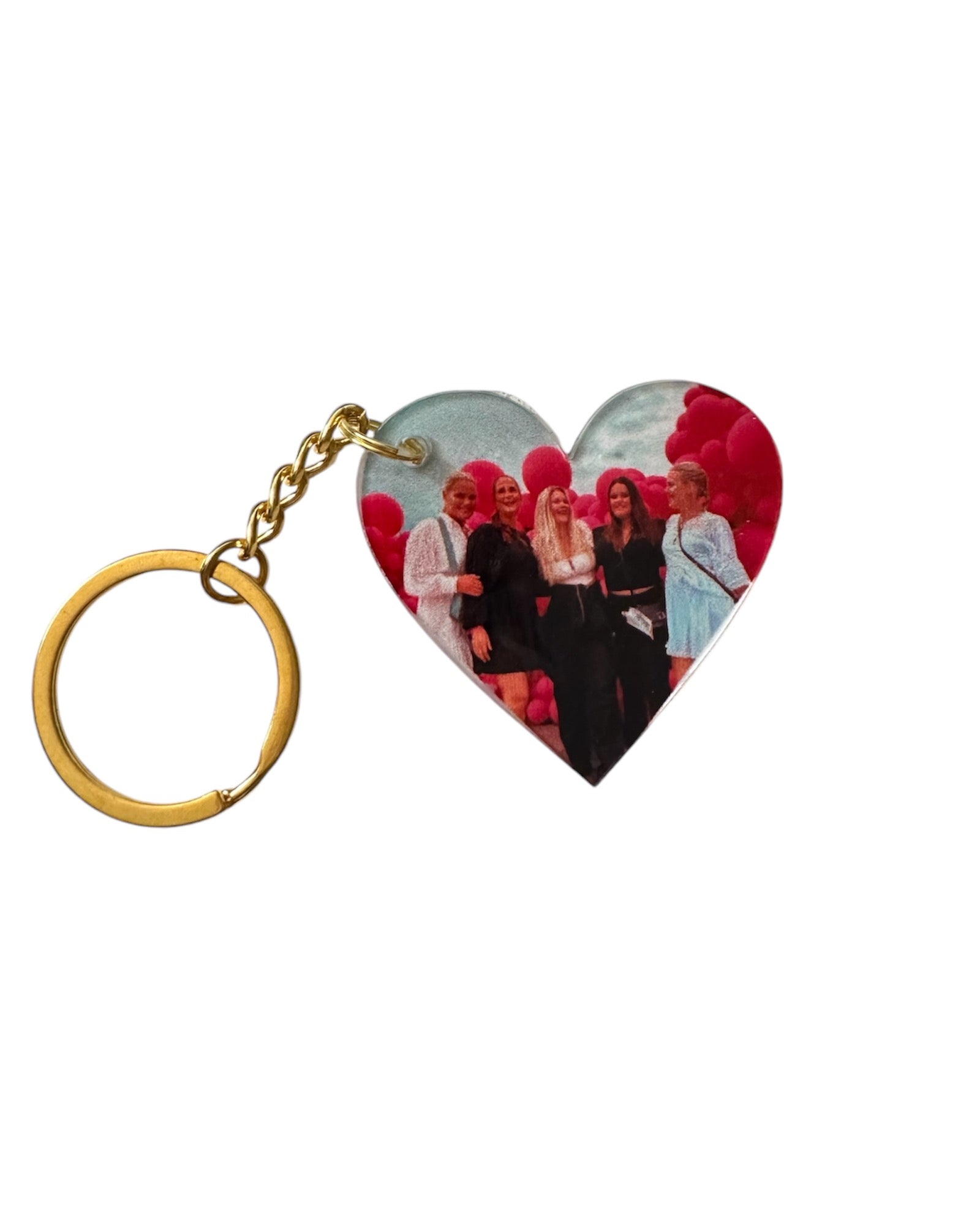 Denne elegante nøkkelringen, utformet som et hjerte, er den perfekte måten å bevare og vise frem dine kjære minner på. Last opp ditt eget bilde og få det trykket på nøkkelringen, slik at du alltid kan bære med deg en bit av det som betyr mest for deg.