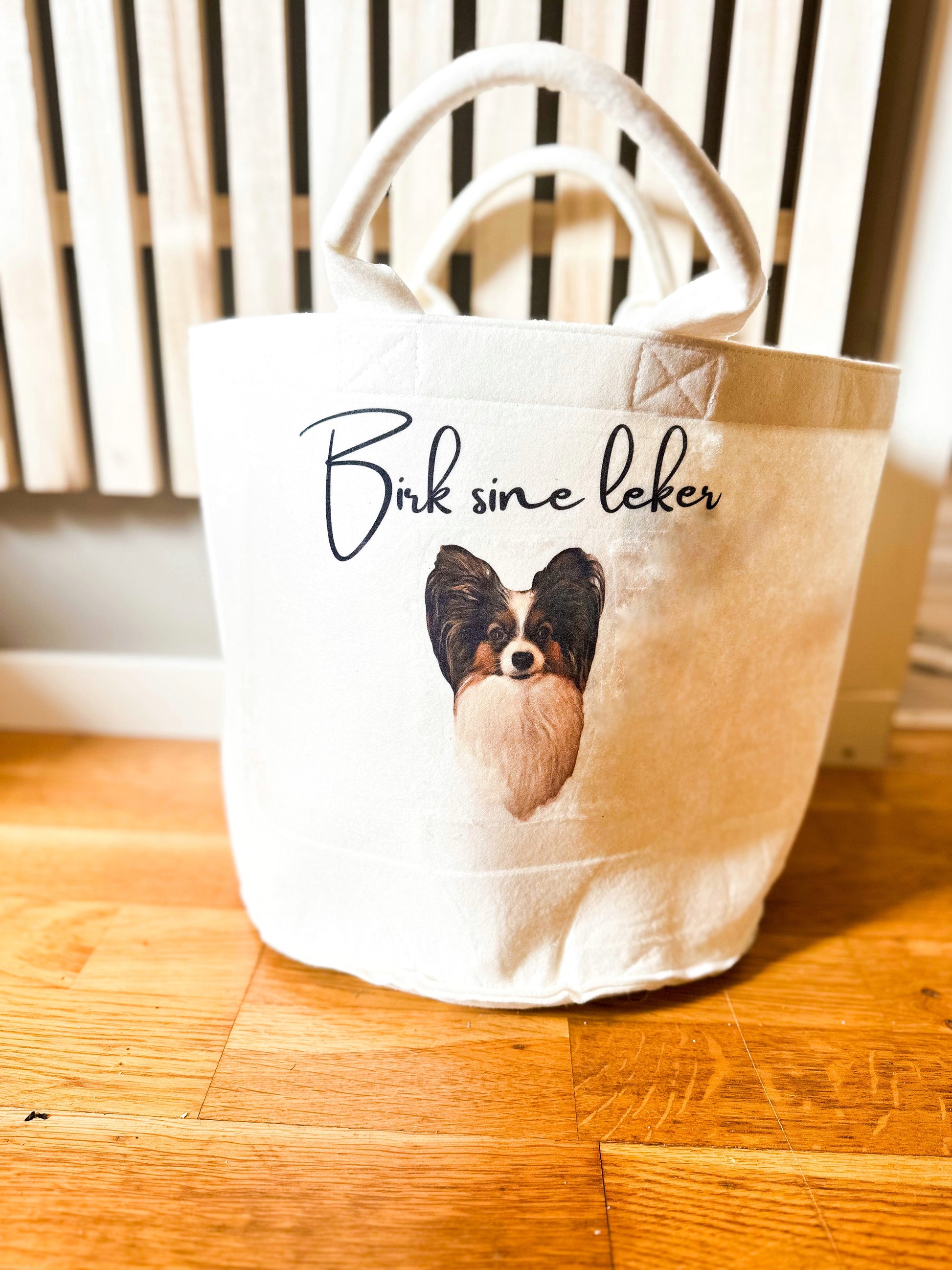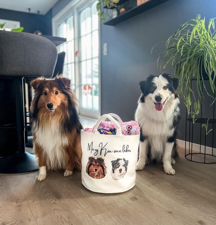 En personlig oppbevarings kurv for leketøy til hund eller katt, perfekt for deg som liker å ha hjemmet ditt organisert.
