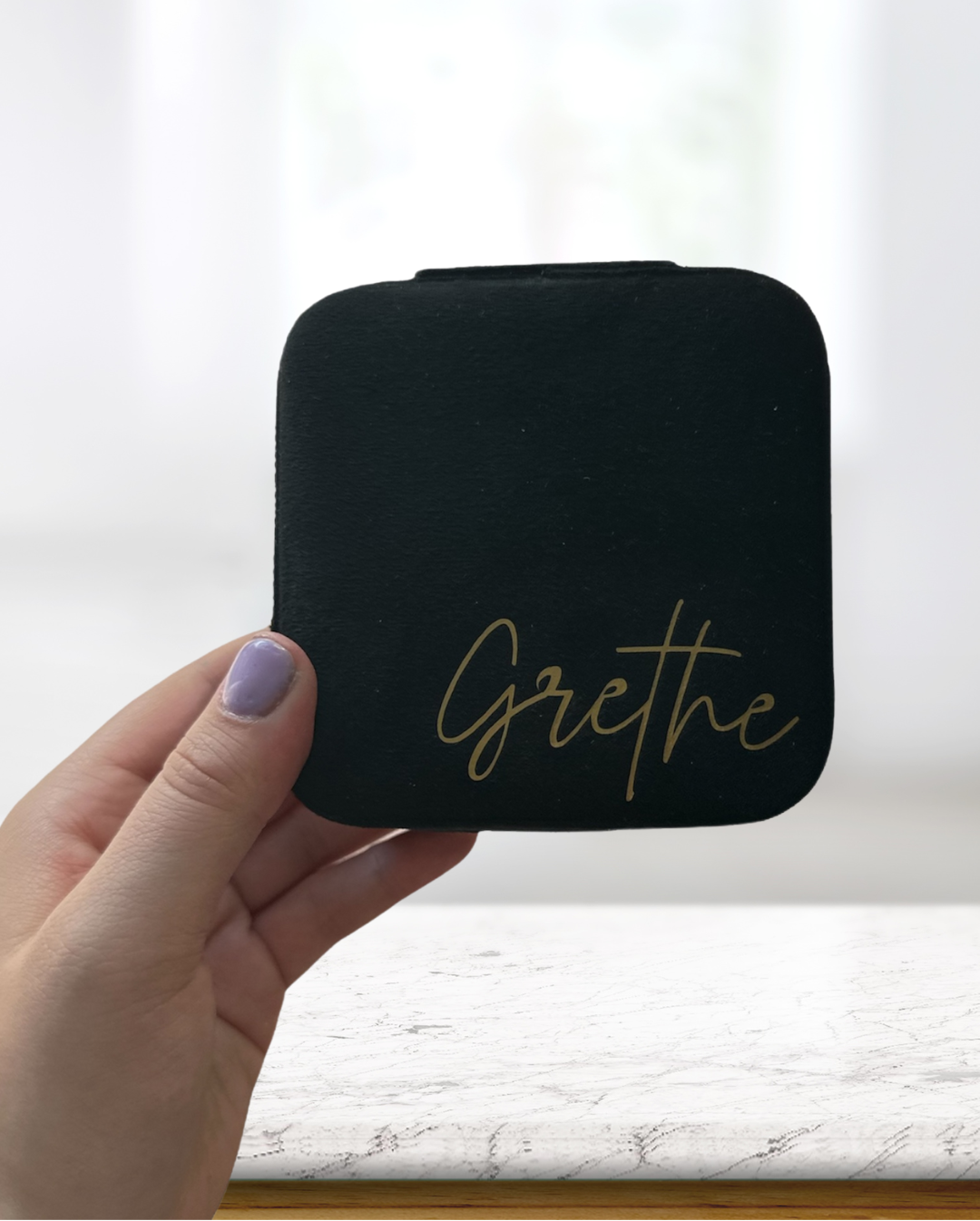 - Personlig Tilpasning: Få navnet ditt eller en kjæres navn brodert på smykkeboksen for en unik og personlig touch.
