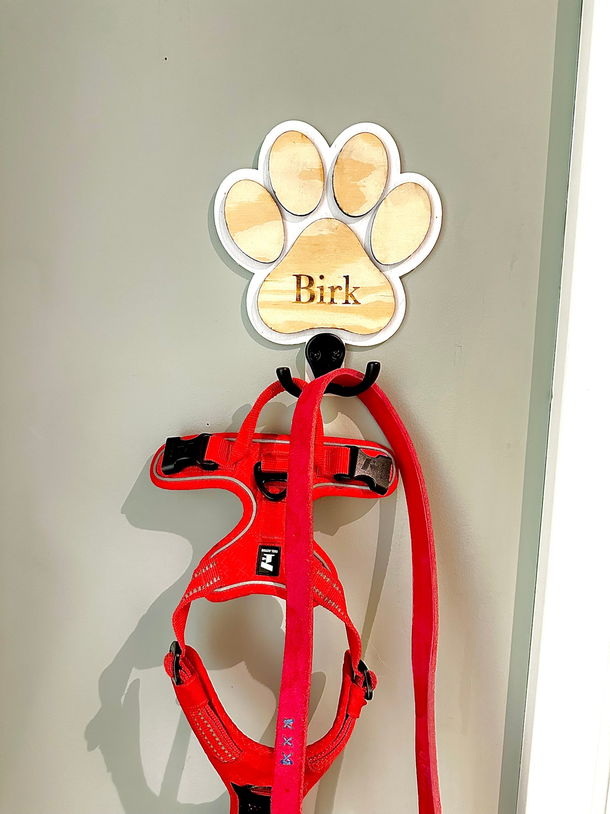 Hold orden i gangen med en Personlige Hundebånd Holder med dobbel krok. Skreddersydd med din hunds navn, gir denne praktiske oppbevaringsløsningen plass til både bånd og halsbånd, slik at du alltid har alt på sin plass. Et must for enhver hundeeier som verdsetter både funksjon og stil.