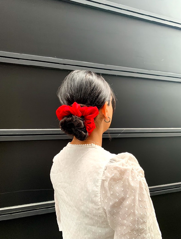 Rød sateng scrunchie