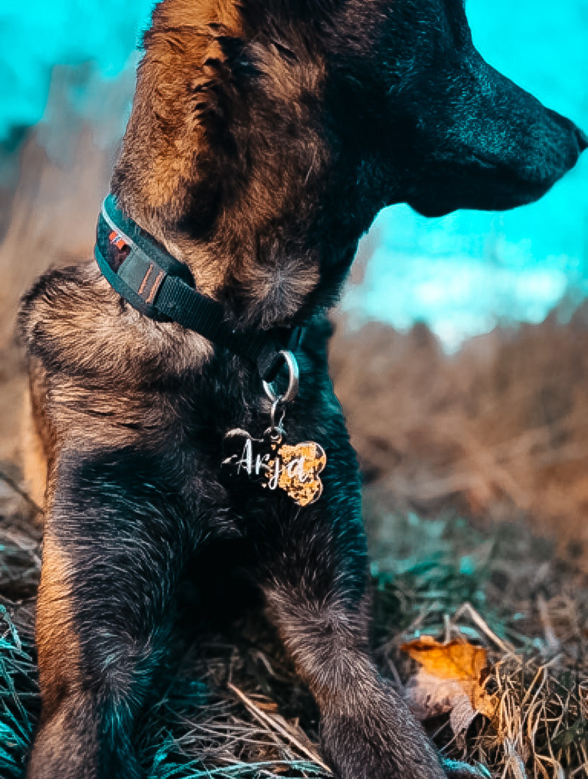 Ønsker du å skaffe hunden din et vakkert personlig tilbehør, er disse taggene perfekte. Du kan selv velge navn, og størrelse på taggen. Dersom du har en liten hund anbefales en liten størrelse, og dersom du har en stor hund så anbefales den store taggen.